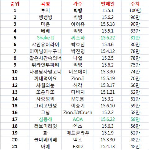발표하는 곡마다 모두 일위부터 찍으니...이제 역시라는 말도 안나와...