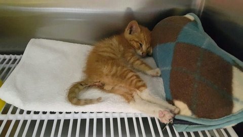 오늘 가서 새끼 고양이의 상태를 본 결과 극심한 영양상태 불량으로