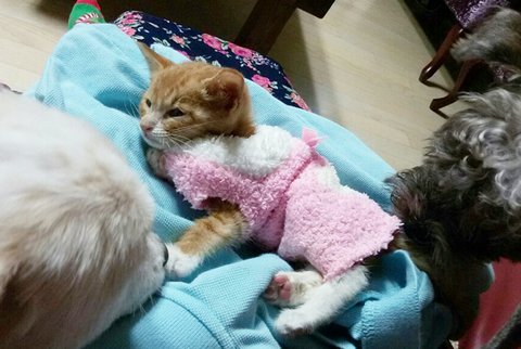 초등학생 아들이 풀숲에서 새끼고양일 집에 데리고 왔답니다..
