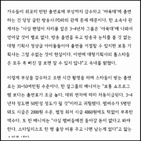 "'아육대'에 나가지 않으면 방송국과 등을 질 수도 있기 때문에 출연하는 거다"며 "섭외 불응 시 불이익을 당할 우려가 있다. 매년 부상에 통편집 되기도 하는 문제가 있다"