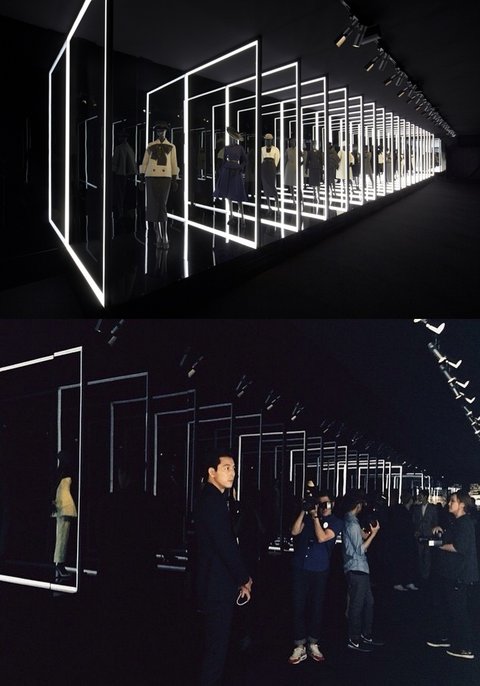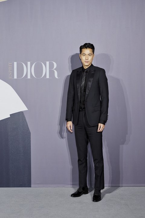 크리스챤 디올의 시그니쳐 스타일이 전시된 디올 얼루어 전시관에 서있는 정우성..