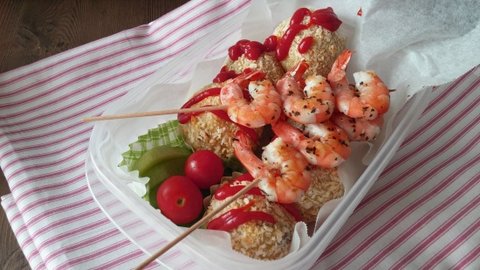 도시락으로 싸갔던 새우꼬치구이랑 감자치즈크로켓입니다.