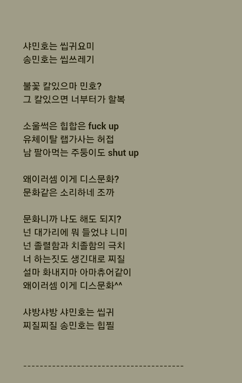 샤미노 귀여미ㅋㅋ 송민호 힙찔이ㅋㅋ 개극혐ㅋㅋㅋㅋ
