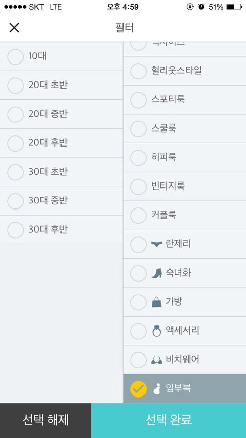 임부복체크하시고 선택완료 누르시면