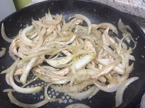 양파랑 닭가슴살을 볶아주었습니다.
