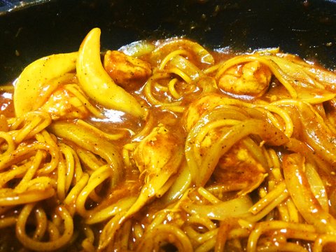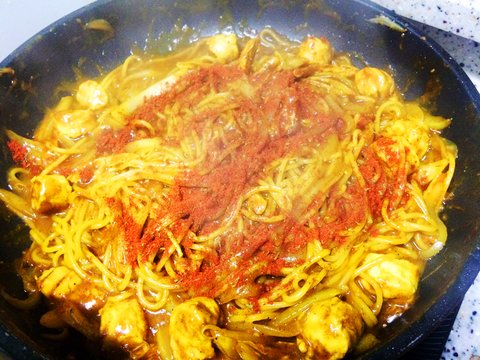 카레 안에 양념가루 같은게 들어있길래 뿌려줌. 덕분에 매콤해짐 :>