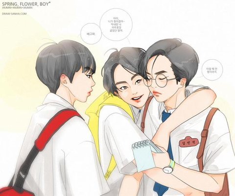 지금 우연히 둘러보다가 발견했어 너무 귀여워서 웅녀들이랑 같이 보려고 데리고 왔당 ㅋㅋㅋ 초등학생인 삼둥이 민석이들! 공부 잘하는 큰형이 고백을 받았대 ㅋ 잘해보라는 애교쟁이 둘째, 전혀 관심없는 시크한 막내... 팬아트가 정~~말 귀엽지? ㅋㅋㅋㅋ 고백한 여자아이 이름은 김종달새 ㅋㅋㅋㅋㅋㅋㅋ