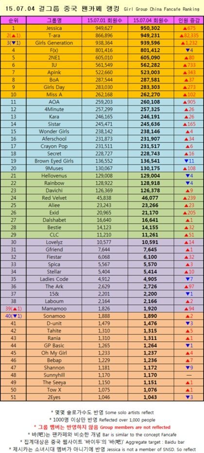 1위에 오른 제시카 또한 소녀시대 맴버들이 그녀를 시기질투해 숙청 한것이라고 주장하는 일파와 소녀시대를 지지하는 기존파가 대립중이다.