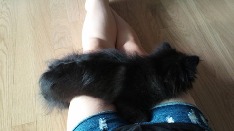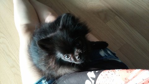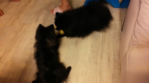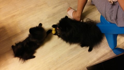자기 새낀줄도 모르고 장난감 안주겠다고 앞발로 꼭 누르고 있네요 콩이아빠인 까망이가 ^^