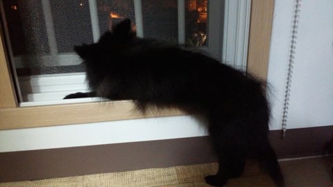 예전엔 앞발로 서서 보던 창밖~