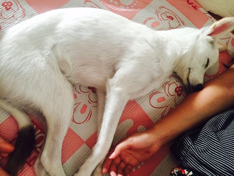 그러다 또 잠들어요 ㅋㅋ 강아지들은 주인 닮는다는데