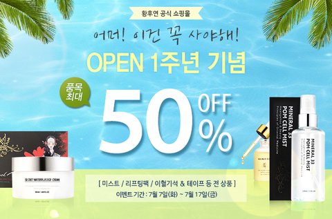 천연화장품 쇼핑몰 황후연에서 오픈 1주년 맞이해서 대박할인 하고 있네요.