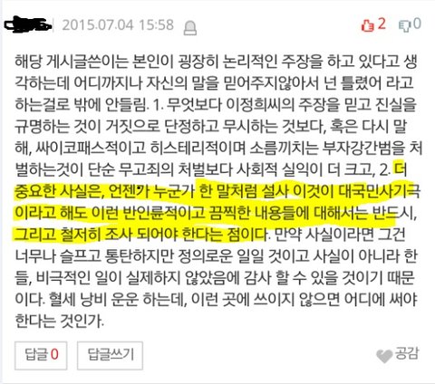 이 댓글도 정말정말 많이 보이더군요. 뒤에 세계적인 세력 (...) 이 있지 않다면 왜자꾸 기사가 내려가고 청원서가 내려가는가?