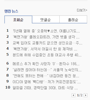 저 10개가 다 7월 6일 에 올라온 기사들 입니다. 또는 가끔 어제 뉴스도 있긴하죠. (하나하나 다 클릭해서 날짜 확인해보시길)