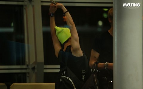 무릎 사이에 다소곳한 손
