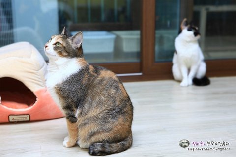 다른 고양이들의 냄새가 삼순이 몸에 베어서인지 함께 지내던 고양이들이 미친듯이 달려와