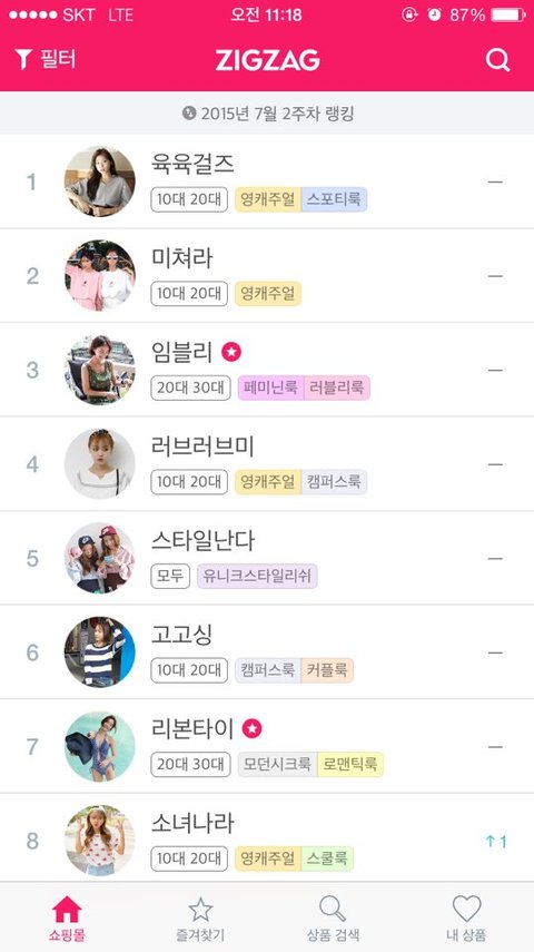 처음 들어가면 7월2주차 쇼핑몰 순위가나와요