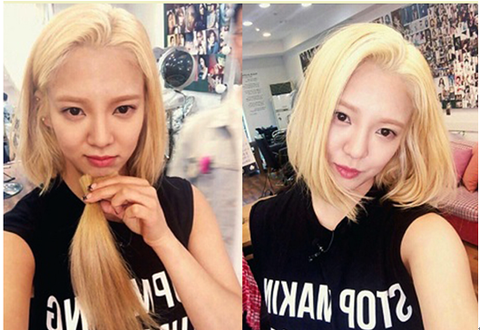 데뷔 이후로 처음 금발로 변신한 윤아와 단발로 변신한 효연..