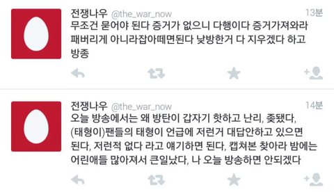 방탄이 떳긴떳나봄 방탄으로 시청자수 늘릴려고ㅋㅌㅋㅋㅋ지금도 방송하면서 자기는 뭘 잘못했는지 모루겠다고 발뺌중 진짜 관종인듯
