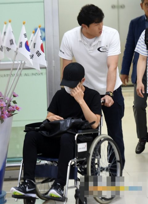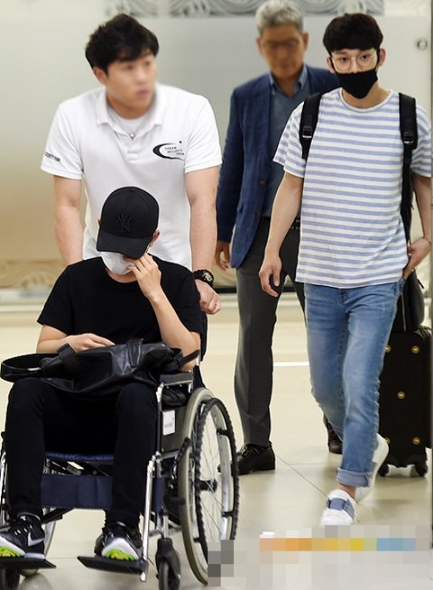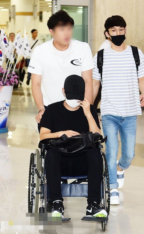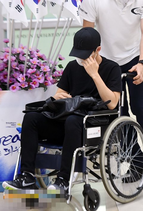 얼마나 다쳤는지 휠체어 타고 입국함ㅜㅇㅜ