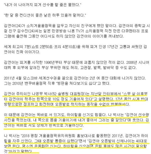 아작 난 몸을 이끌고 후배들에게 올림픽 무대를 경험할수있게