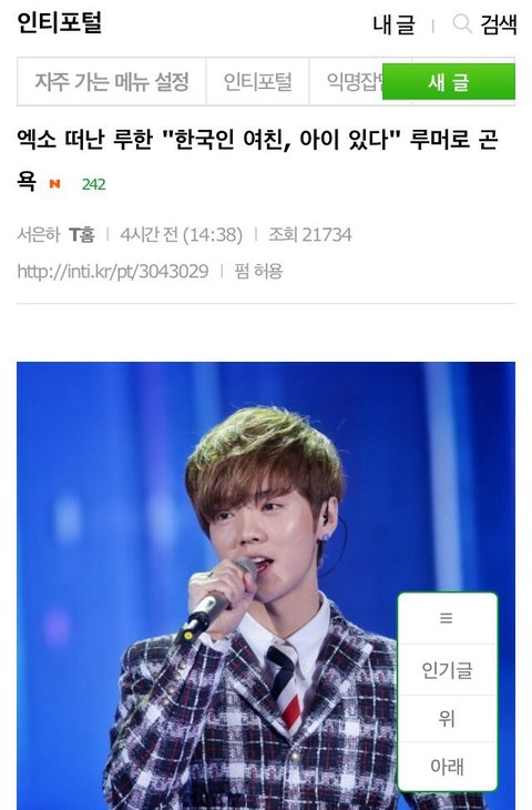 엑소 떠난 루한 "한국인 여친, 아이 있다" 루머로 곤욕