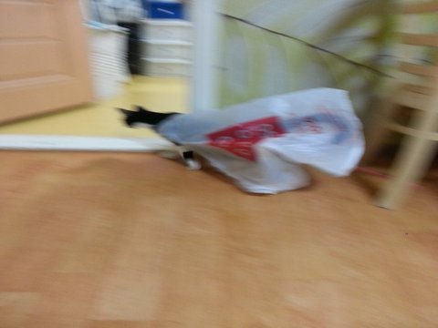 비닐봉지를 망토삼아,,,거실을 누비며,,,