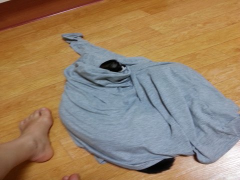 그날도 어김없이 쿠로님께서 목쪽으로 해서 옷안으로 들어오셨습니다.