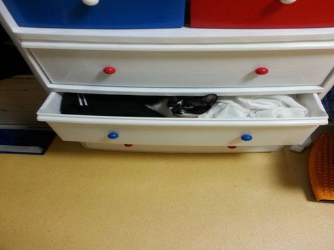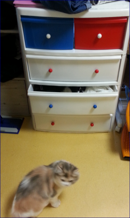 그속으로 들어가고,,, 그뒤에 아오가 와서 서랍을 밀어 닫아 드립니다.