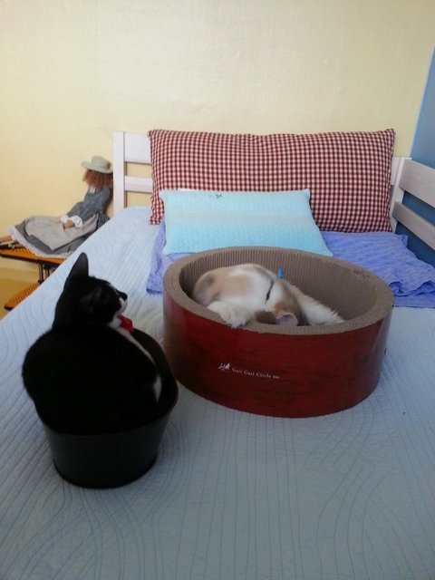 둘중 한애가 들어와서 같이 잡니다.