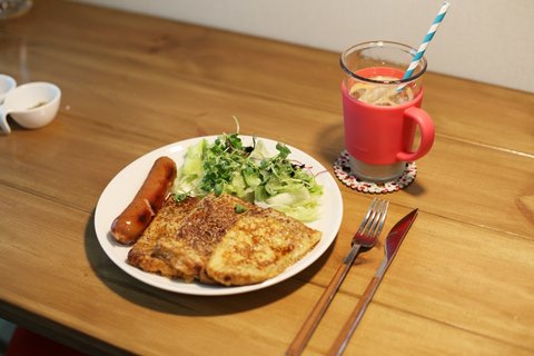 주말아침은 거의 빵모닝해요~ 계란에 시나몬가루 넣어서 식빵에 입혀서 구우면 굳~