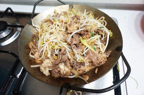 차돌박이랑 숙주 넣고 굴소스 넣어서 파바박 볶아서 한끼 해결