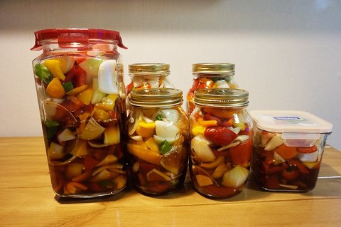 어찌 처리할까 고민하다가 장아찌 담아서 주변에 선물했어요.