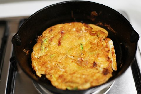 비오는 날엔 무쇠팬에 김치전 바삭하게 구워서 흡입