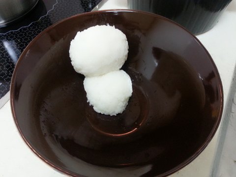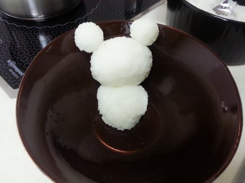그리고나서, 머리는 가로로 조금 길게해서 동글동글 만든 다음 몸통 위에 살포시 올려줍니다.