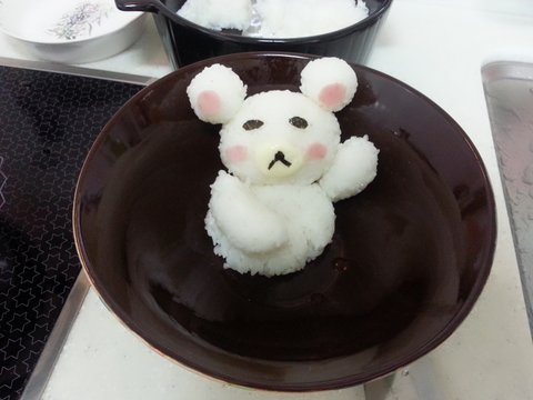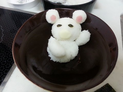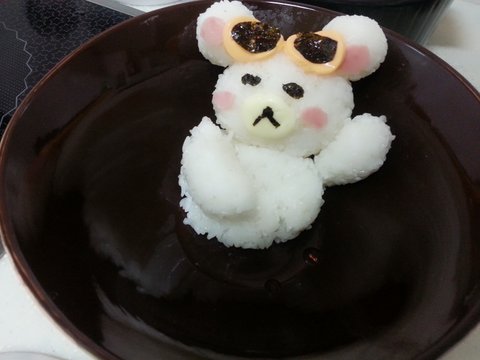 귀는 슬라이스 햄으로, 눈은 김으로, 입가는 흰색 치즈로 표현해주는데....뭔가 마음에 안든다.