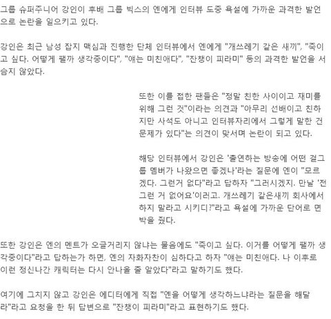 빅스 엔보고 개쓰레기라고 한 강인ㄷㄷㄷㄷ.JPG