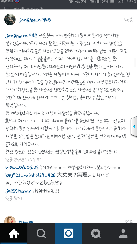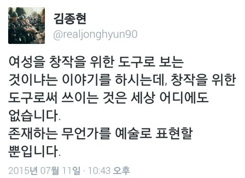 요즘 여혐때문에 시끄럽고, 민감한 부분인것도 알고 있음. 다만, 김종현이 말도안되는 일로 더는 상처를 받지 않았으면 함.