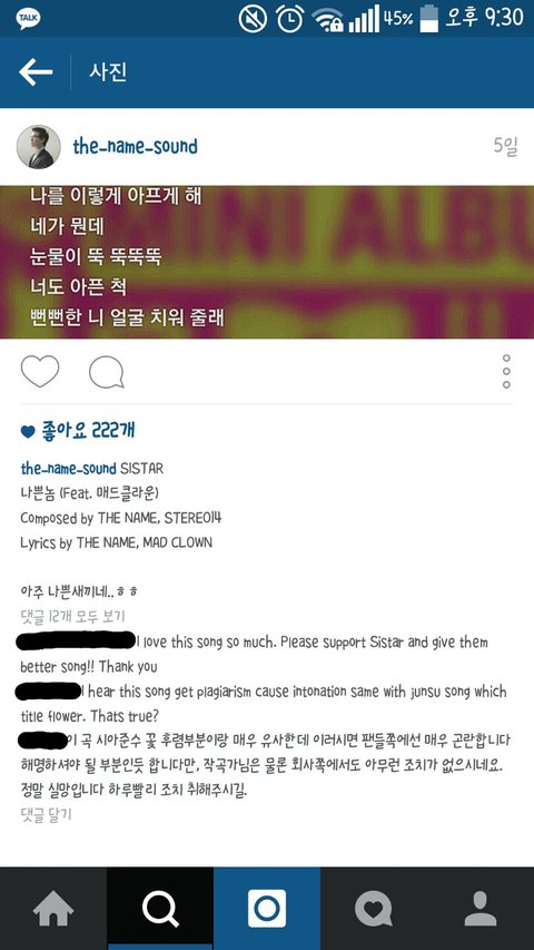 언제인지는 기억이 안나지만 씨스타 '나쁜놈' 작곡가인 더네임 분이 인스타그램에 게시글을 올렸습니다. 나쁜놈 이라는 곡에 대해서요.