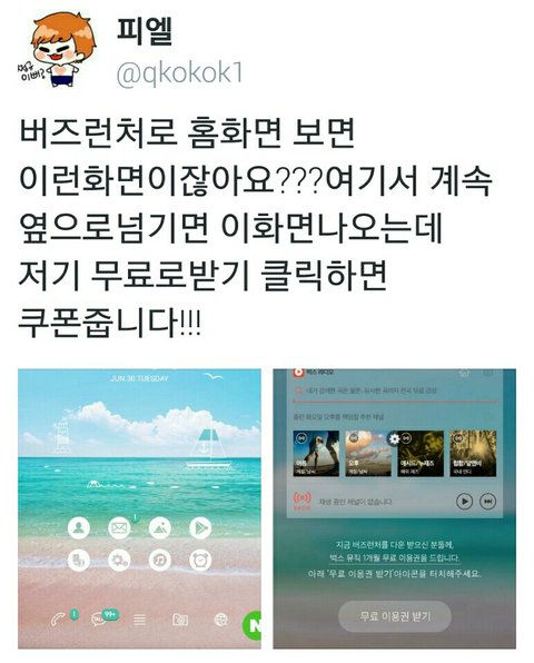 그리고 ▲이사진대로 따라하면 벅스 한달 스밍이용권 받을수있어