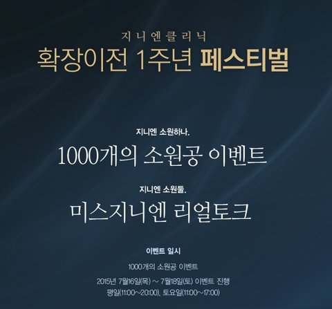 7월 16, 17, 18일 3일동안 진행되는 지니엔클리닉의 소원공이벤트