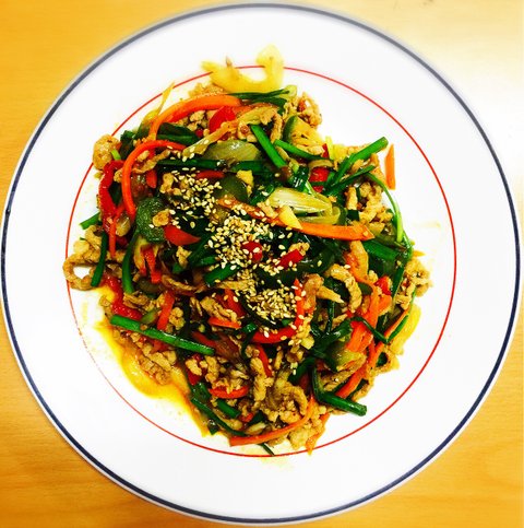 시들시들, 남아도는 야채들은 그저 채썰어서 고기랑 들들 볶는게 제일 아니겠습니까??그래도 나름 두반장과 굴소스를 주문하여 때려붓고 볶아보았습니다. 시골이라 그런가 제일 큰마트에도 꽃빵은 안팔더군요ㅠㅠ 그냥 먹었습니다. 간만 잘맞추면 맛이 없을수 없는 재료들ㅋㅋ팁은, 고기를 먼저 볶고 야채는 나중에 넣고 살짝 볶아주세요, 야채를 오래 볶으면 숨이죽어서식감도 별로고 끈덕해져요..너무 당연한 소릴..;;;
