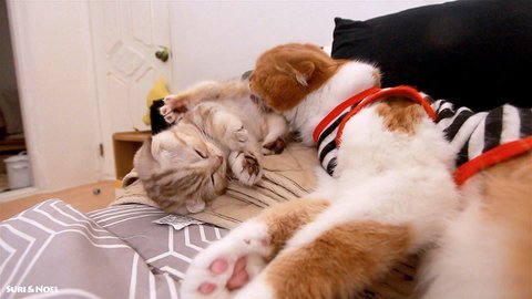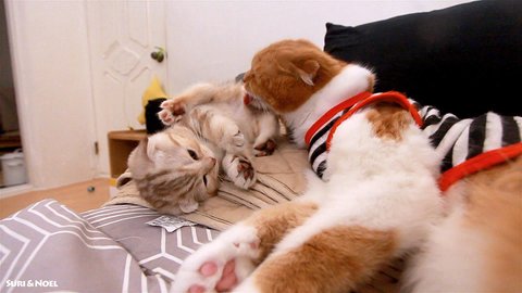 노을이가 라온이 그루밍 해주는거 보니