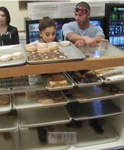 바로 도넛 상점에서 진열된 도넛에 침을 뱉고