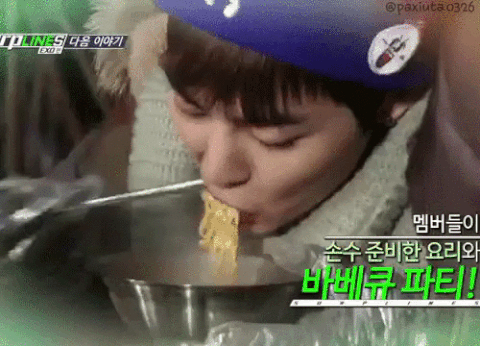 엑소 데뷔전 떡볶이 냠냠하는 시우민 >.<