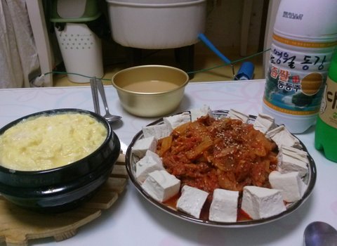 비오는날 동동주 홀로딱! (두부김치 두부는 이상하게 깍뚝썰기가 좋더라고요ㅎ)