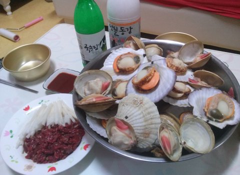 친구랑만 먹은게 맘에 걸려서 그주 주말에 부모님댁에 가서 모듬조개찜 해드렸어요 :)
