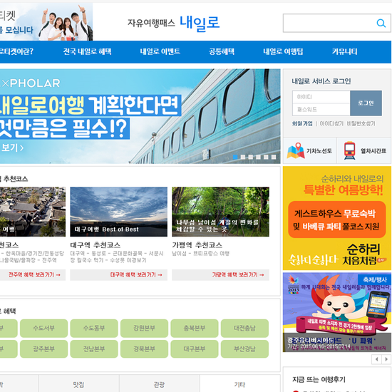내일로 공식사이트입니다. http://www.rail-ro.com/new/main/유용한 팁들과 코스들을 살펴볼 수 있습니다. 내일러라면 즐겨찾기 해둬야해요