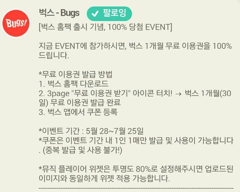 그리고 ▲이사진대로 따라하면 벅스 한달 스밍이용권 받을수있어