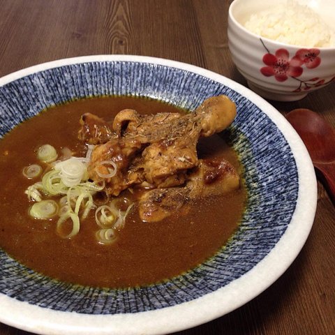 닭다리를 절개해서 구워 카레를 만들었습니다